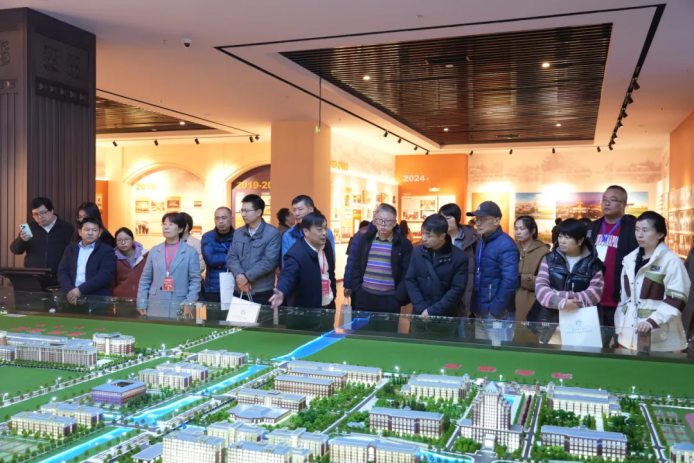 会后,艾弗森贝博ballbet官网科技集团董事长张福德、总经理唐佩随队和与会人员一起参观了南通理工学院的数智展馆、张謇教育文化馆等地并合影留念。